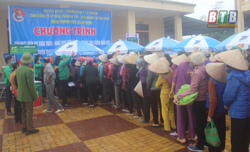 Trong quá trình phát khẩu trang, nước rửa tay, thuốc bổ, Đoàn Thanh niên huyện Tiền Hải đã phối hợp với Tổng Công ty Dược phẩm Hà Tây – Chi nhánh Thái Bình tích cực tuyên truyền cho người dân xã An Ninh những điều cần biết để không bị nhiễm bệnh Covid-19, các triệu chứng nhiễm bệnh; vệ sinh môi trường tại gia đình, khu dân cư để giảm nguy cơ mắc bệnh và cách đeo khẩu trang y tế đúng cách nhằm phòng chống nhiễm bệnh Covid-19.