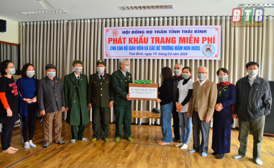 2.000 khẩu trang y tế đã được trao tặng cho cán bộ, giáo viên, học sinh Trường Tiểu học Kỳ Bá và Trường Mầm non Ikids thành phố Thái Bình. Đại diện Ban giám hiệu các nhà trường gửi lời cảm ơn Hội đồng họ Trần tỉnh Thái Bình, đồng thời khẳng định toàn bộ số khẩu trang trên sẽ được 2 nhà trường trao đến cán bộ giáo viên, nhân viên và các em học sinh toàn trường ngay khi các em trở lại trường học.