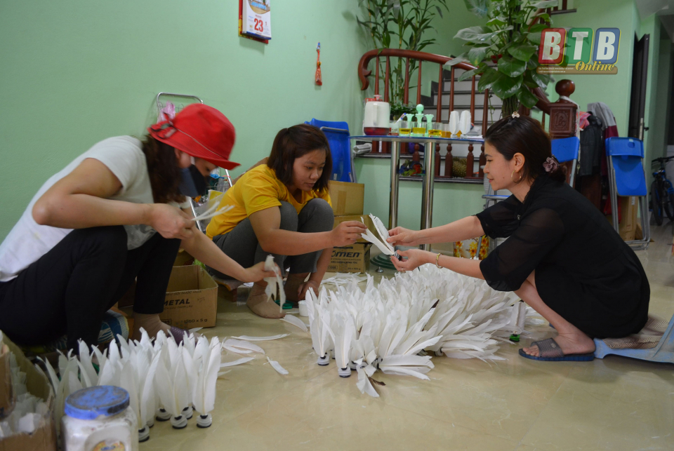 Cơ sở sản xuất cầu đá, cầu lông của chị Nguyễn Thị Yên, phường Quang Trung, thành phố Thái Bình cho thu nhập khá và tạo việc làm cho nhiều lao động nữ.
