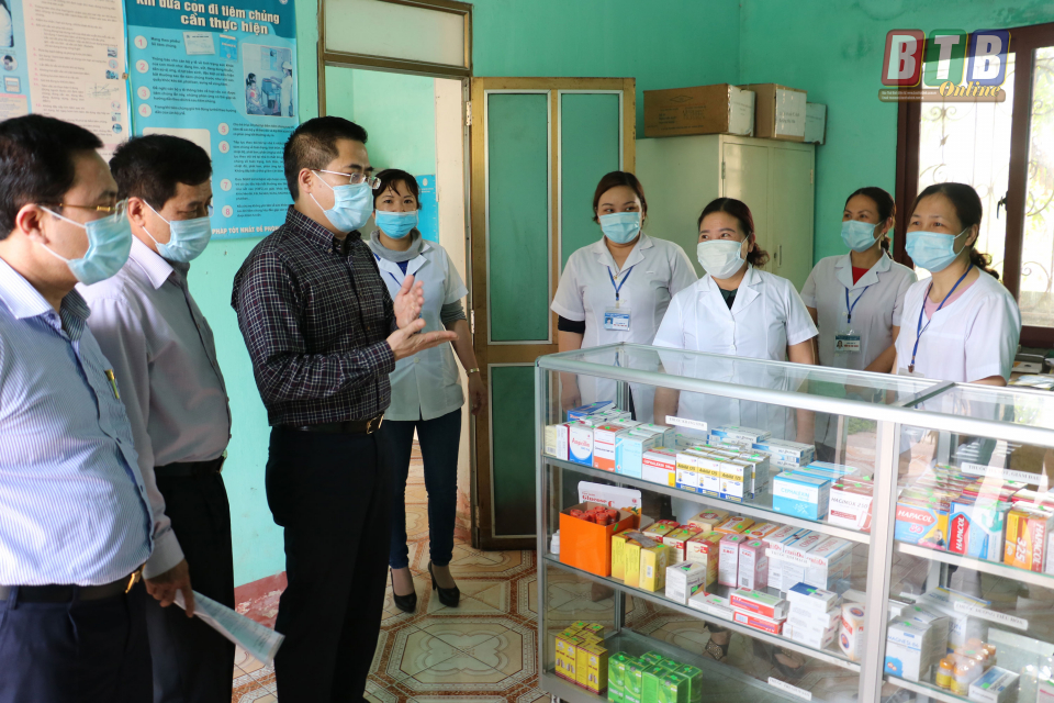 Đồng chí Phó Chủ tịch thường trực UBND tỉnh kiểm tra công tác phòng, chống dịch Covid – 19 tại Trạm Y tế xã Bình Minh, huyện Kiến Xương.