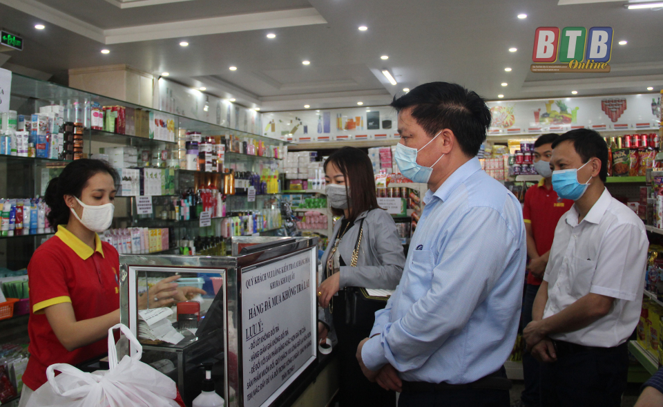 Đồng chí Nguyễn Khắc Thận, Tỉnh ủy viên, Phó Chủ tịch UBND tỉnh kiểm tra công tác phòng, chống dịch tại Trung tâm Thương mại Hải Hà Petro.