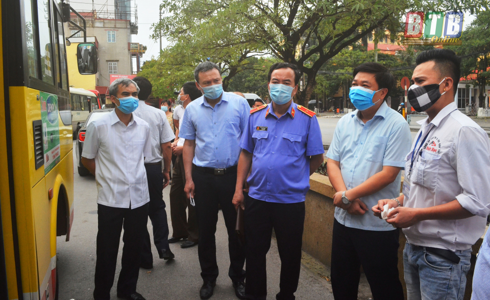 Đồng chí Nguyễn Quang Hưng, Tỉnh uỷ viên, Phó Chủ tịch UBND tỉnh kiểm tra tại Bến xe khách Thái Bình.