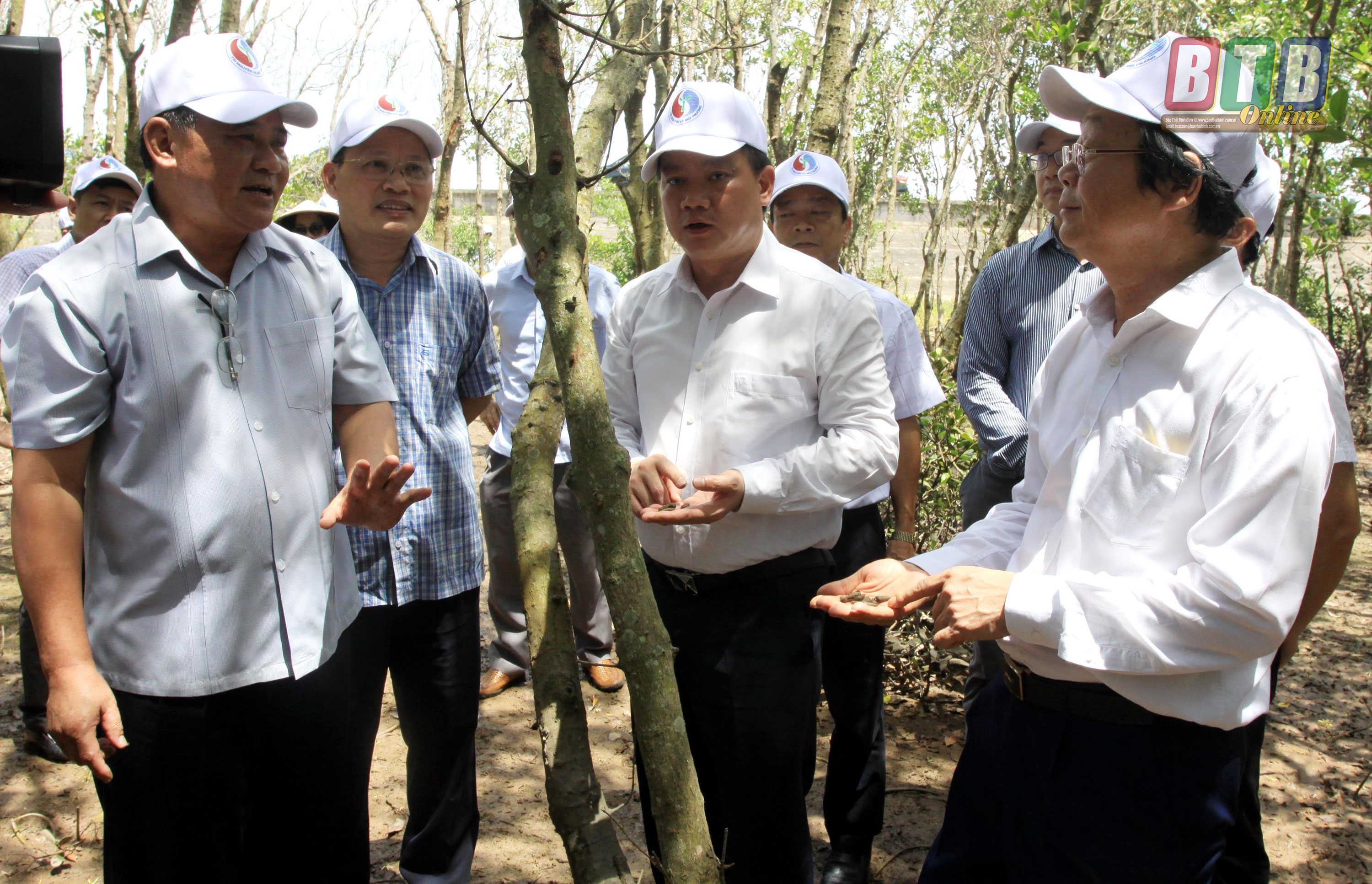 Các đồng chí lãnh đạo Bộ Tài nguyên và Môi trường, lãnh đạo HĐND, UBND tỉnh đi thăm Khu Bảo tồn thiên nhiên Đất ngập nước Thái Thụy.
