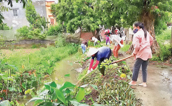 Phụ nữ xã Tân Tiến (Hưng Hà) vệ sinh môi trường.