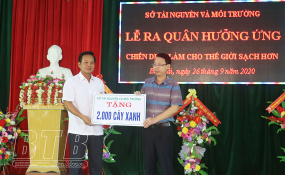 Tại buổi ra quân, Sở Tài nguyên và Môi trường đã tặng 10 phương tiện, thiết bị thu gom rác thải và 2.000 cây phi lao cho UBND xã Bắc Hải.