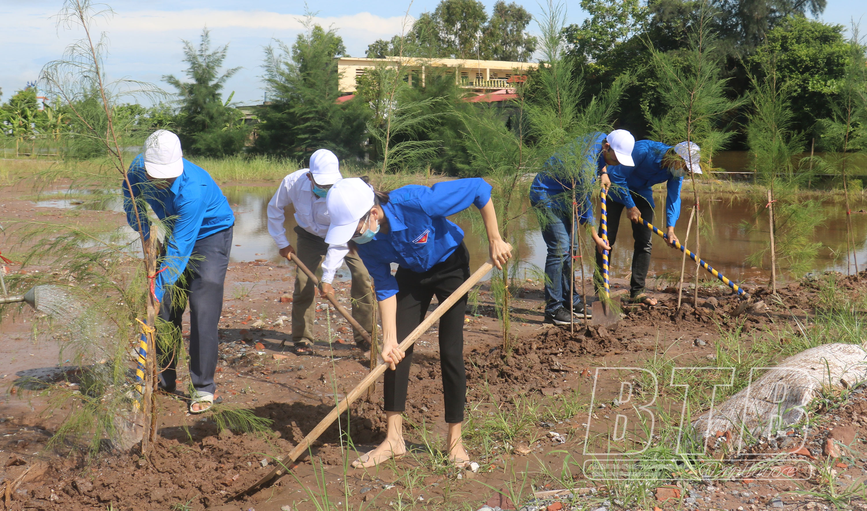 Cán bộ, đoàn viên thanh niên tham gia trồng cây.