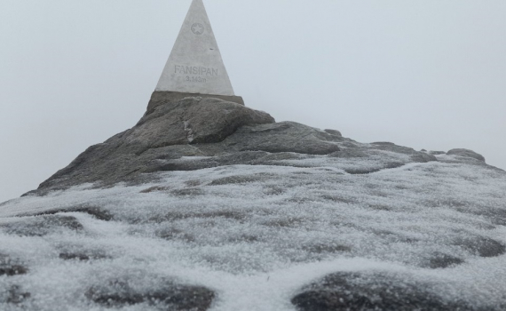 Đài Khí tượng Thủy văn Lào Cai tính toán nhiệt độ thấp nhất lúc rạng sáng trên đỉnh chỉ khoảng 1 độ C, không đủ điều kiện để hình thành mưa tuyết. Trong khi đó, không khí lạnh vẫn chưa tác động mạnh tới khu vực. |