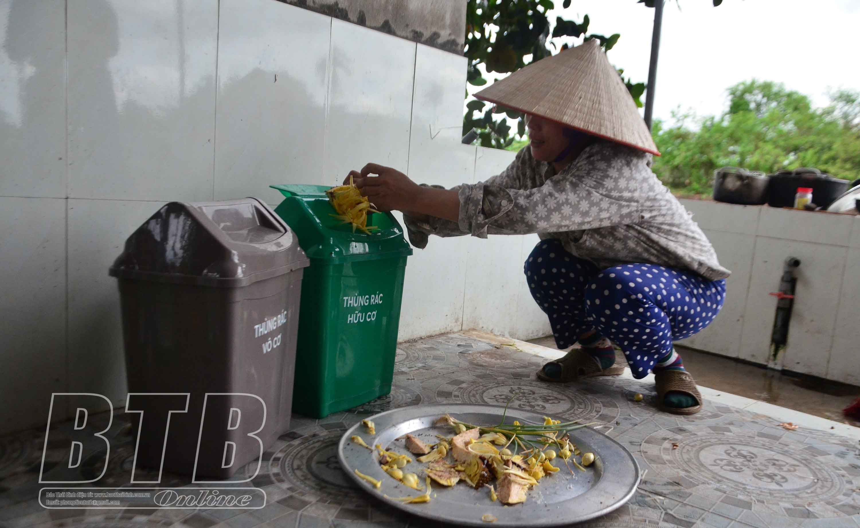 Người dân xã Thụy Ninh phân loại rác thải tại hộ gia đình.