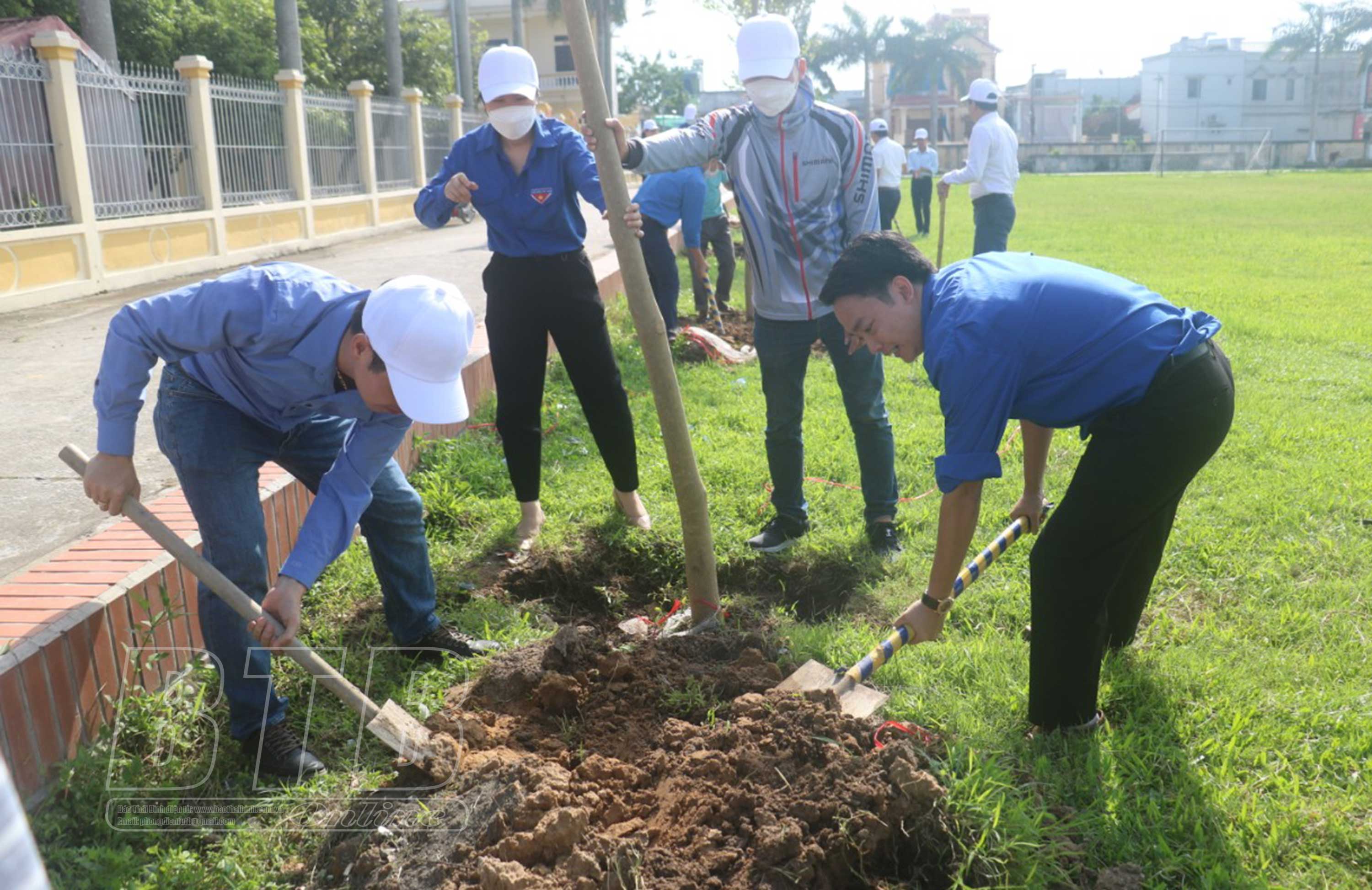 Đoàn viên thanh niên tham gia trồng cây tại xã Vũ Phúc.