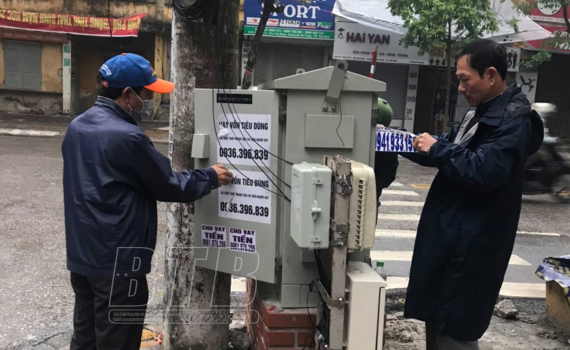 Thu gỡ tờ rơi, quảng cáo trái phép tại phường Đề Thám.