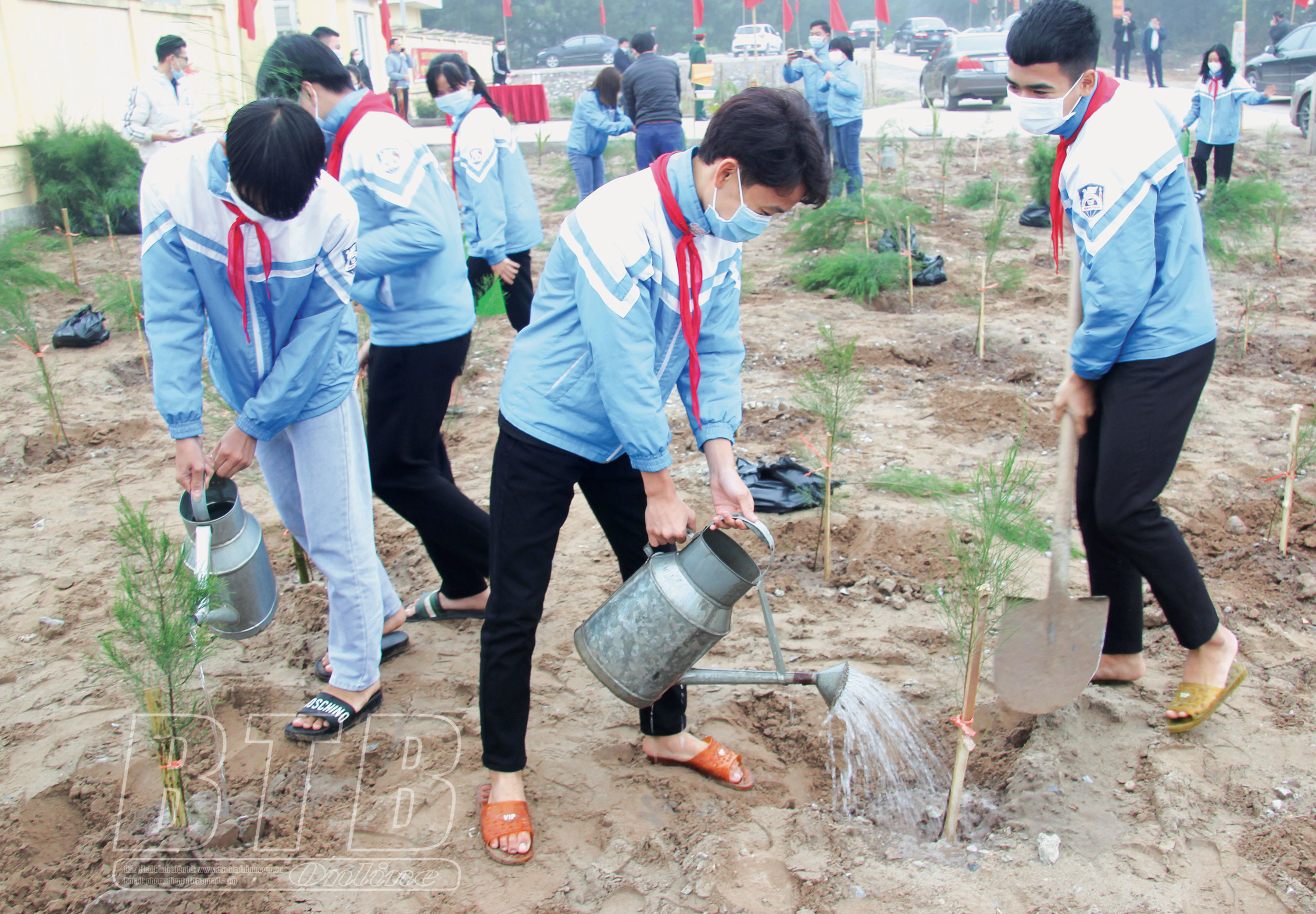 Thiếu niên huyện Tiền Hải tham gia trồng cây bảo vệ môi trường.