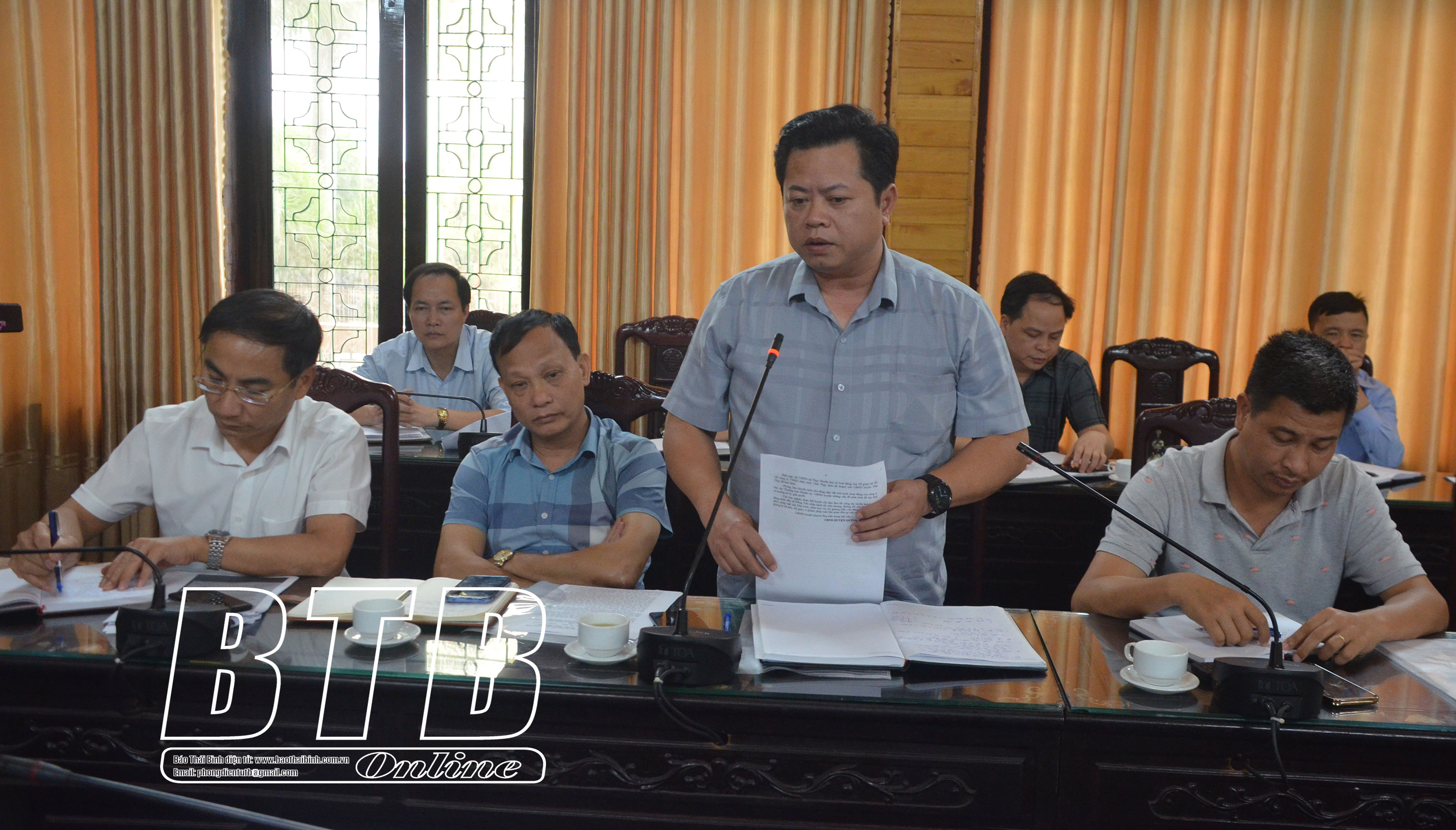 Lãnh đạo UBND huyện Thái Thụy phát biểu tại buổi làm việc.