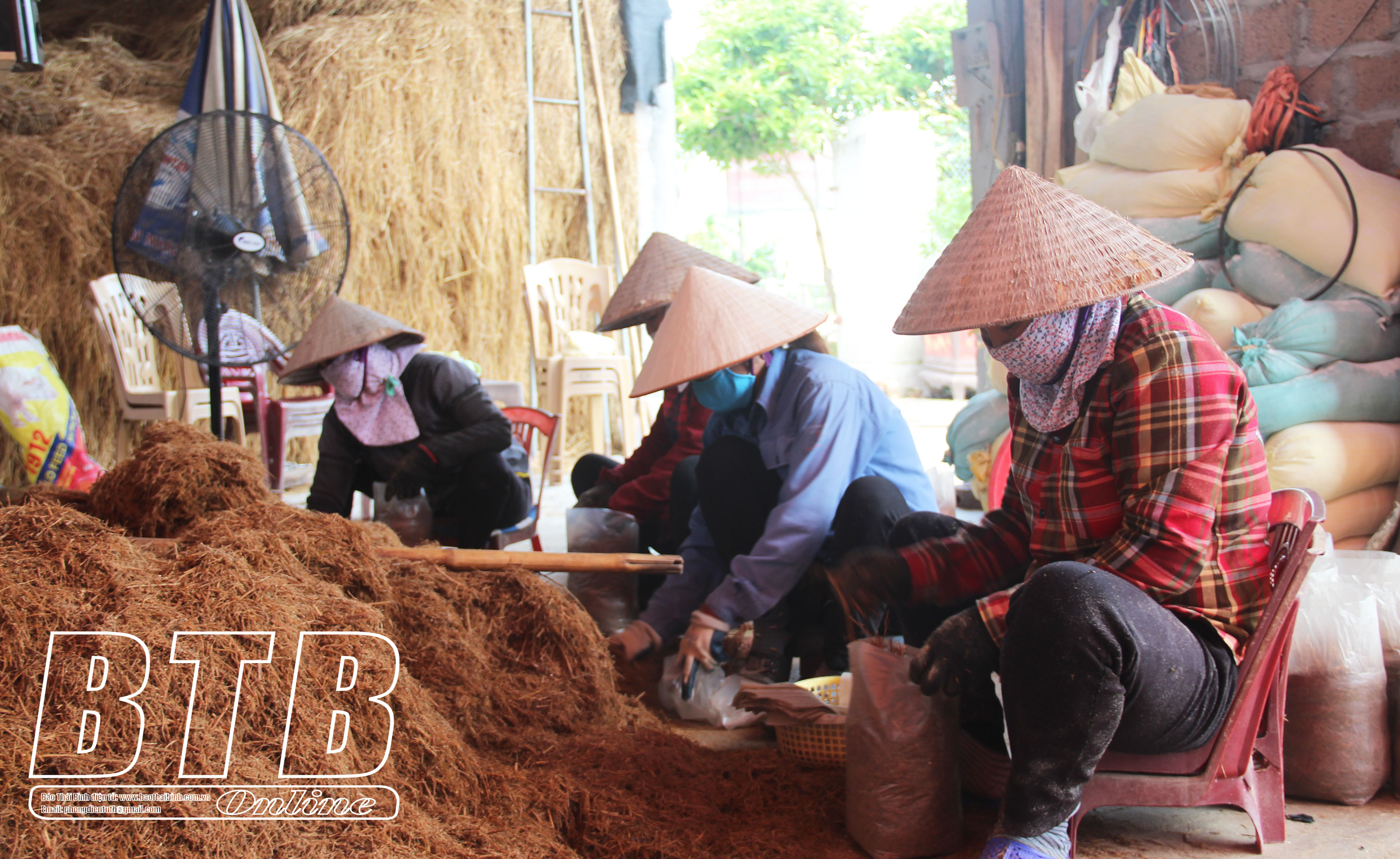 Nông dân xã Bình Định (Kiến Xương) tận dụng rơm làm nguyên liệu trồng nấm.