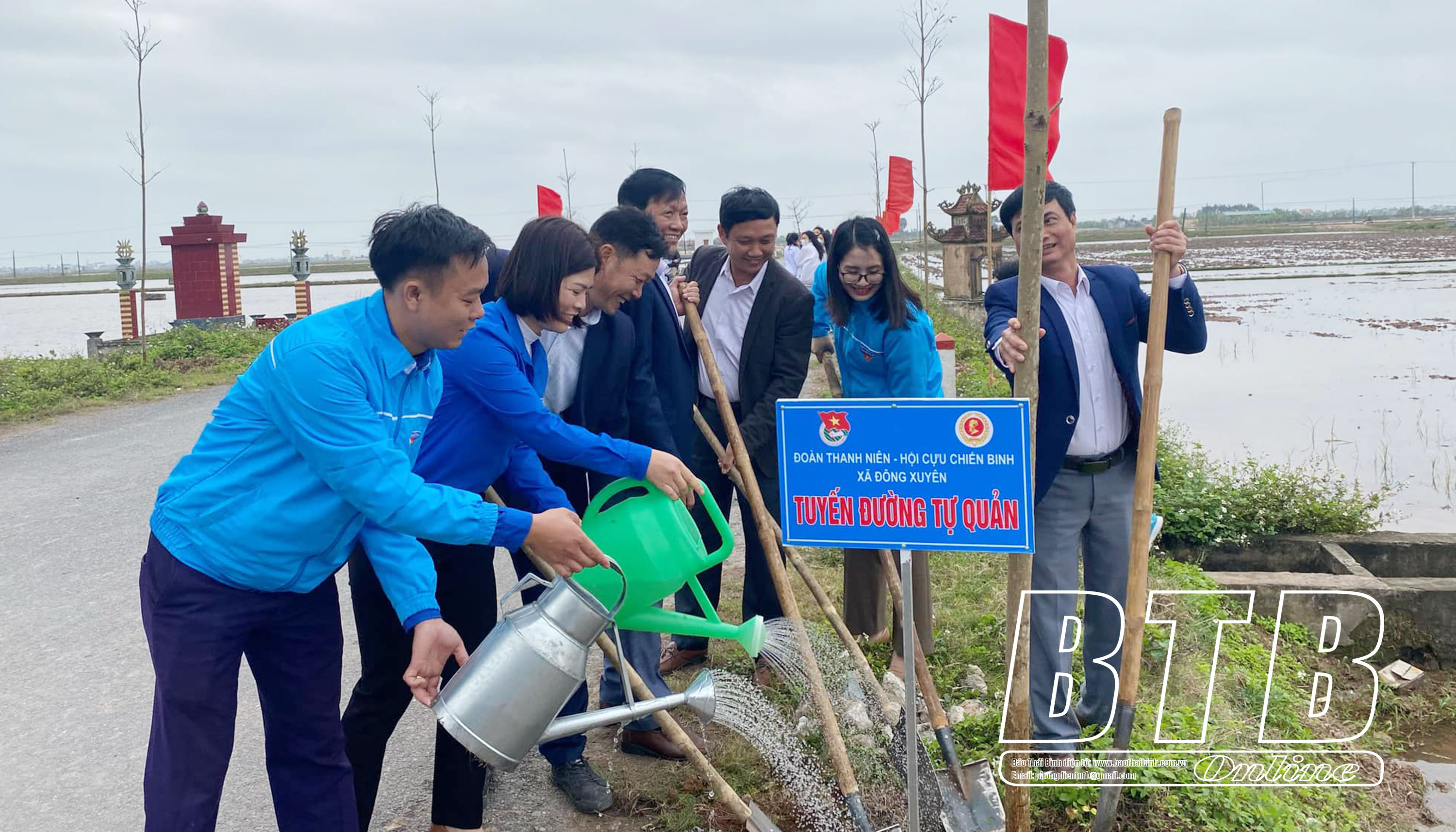 Trồng cây tại tuyến đường Đoàn Thanh niên - Hội Cựu chiến binh tự quản tại xã Đông Xuyên (Tiền Hải).