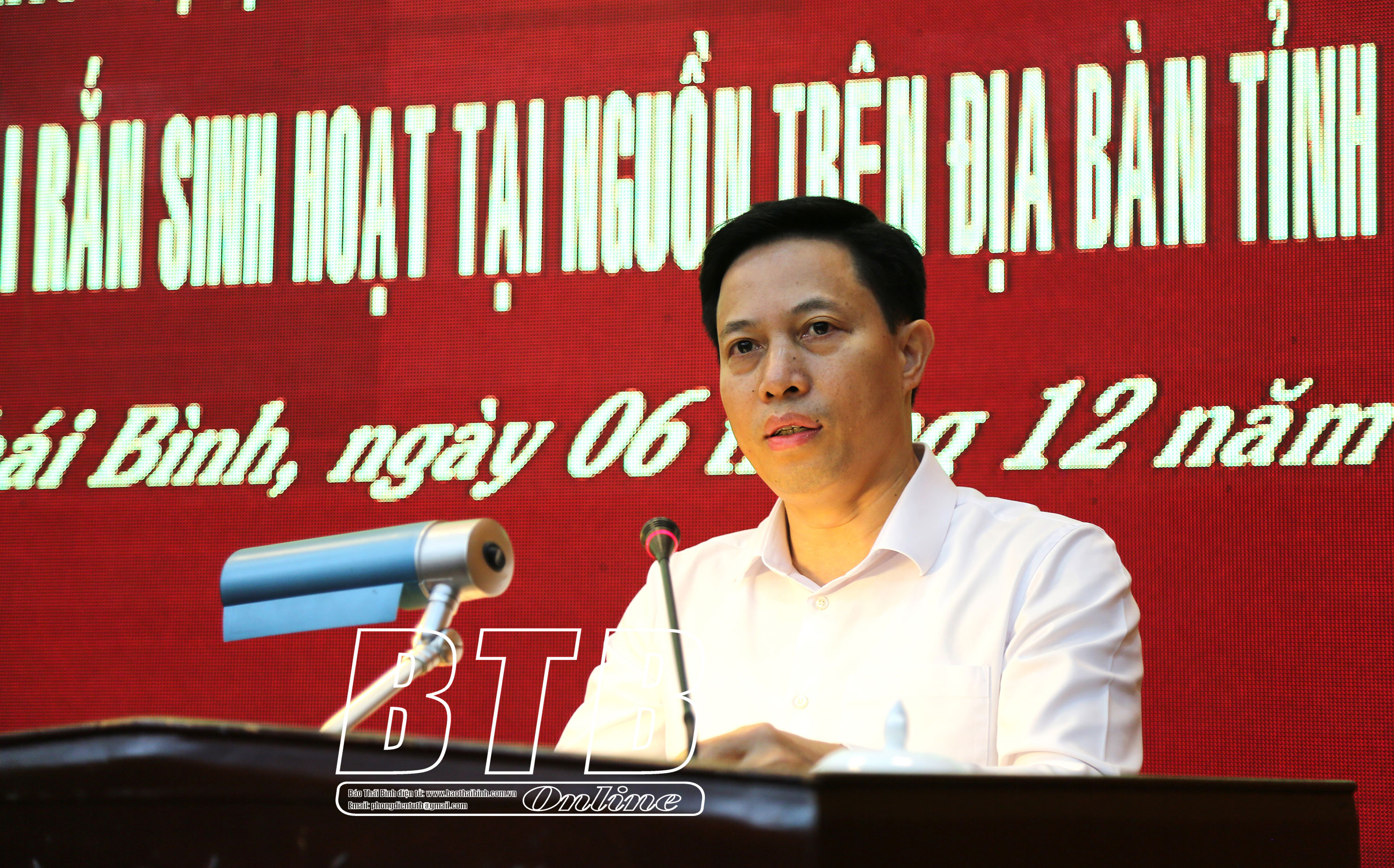 Lãnh đạo huyện Tiền Hải phát biểu tham luận tại hội nghị.