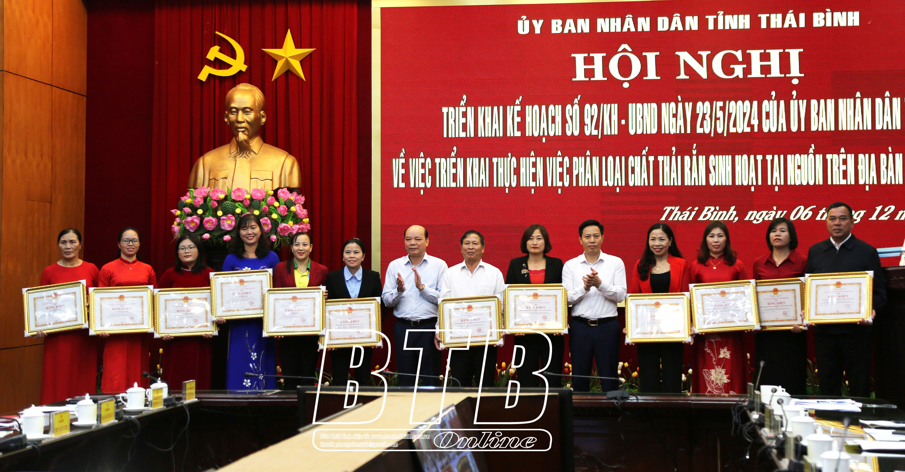 Tại hội nghị, 6 tập thể, 6 cá nhân có thành tích xuất sắc, tiêu biểu trong thực hiện phân loại rác thải tại nguồn được nhận Bằng khen của Chủ tịch UBND tỉnh. Các đồng chí lãnh đạo tỉnh đã trao tặng thùng rác cho một số đơn vị thực hiện tốt việc phân loại rác thải tại nguồn.
