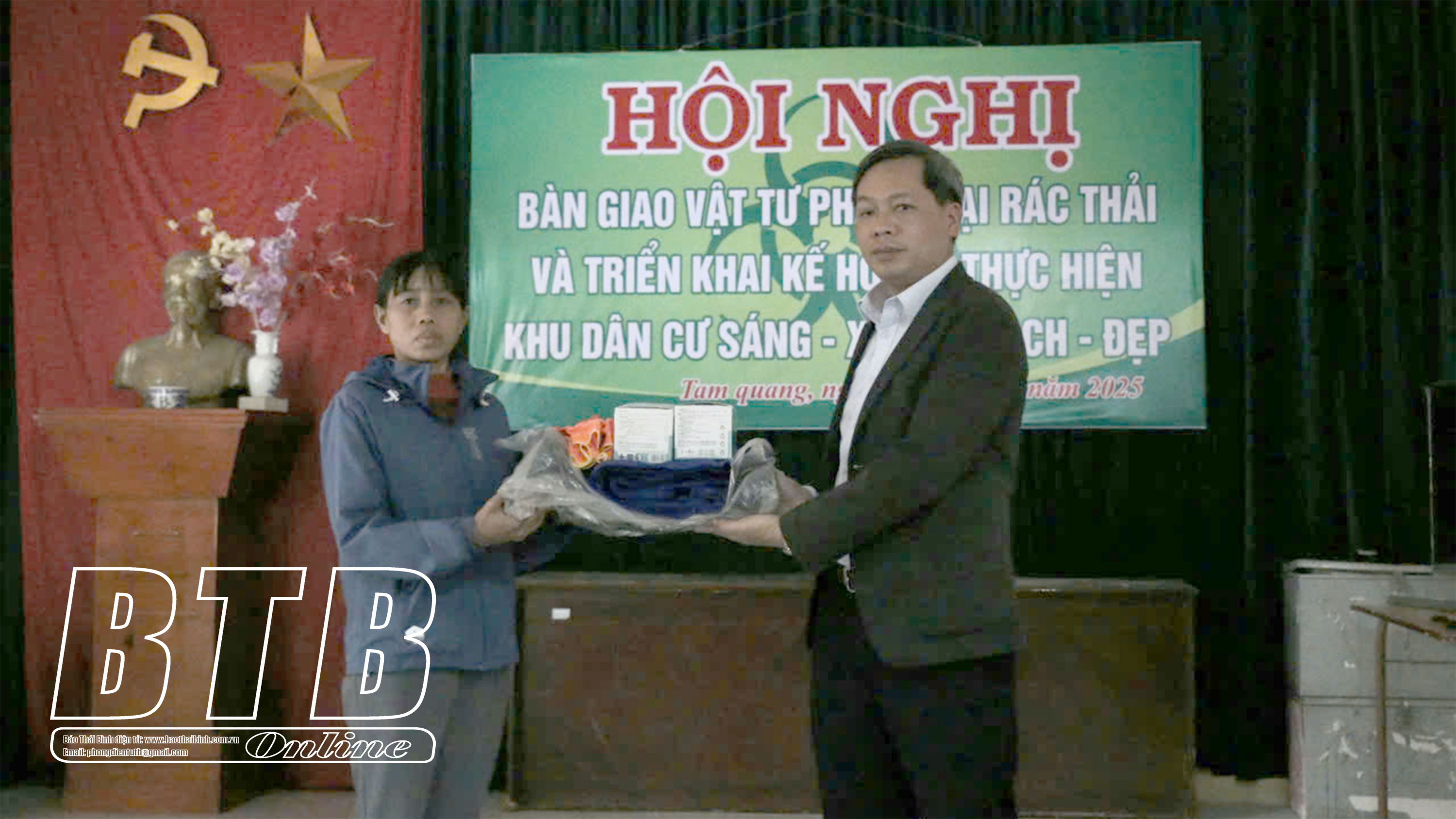 Chiều ngày 17/1, Phòng Tài nguyên và Môi trường huyện Vũ Thư phối hợp với UBND xã Tam Quang tổ chức hội nghị tuyên truyền phân loại rác thải sinh hoạt tại nguồn, bàn giao vật tư phân loại rác thải cho người dân thôn Hòa Bình và triển khai kế hoạch xây dựng khu dân cư sáng - xanh - sạch - đẹp.