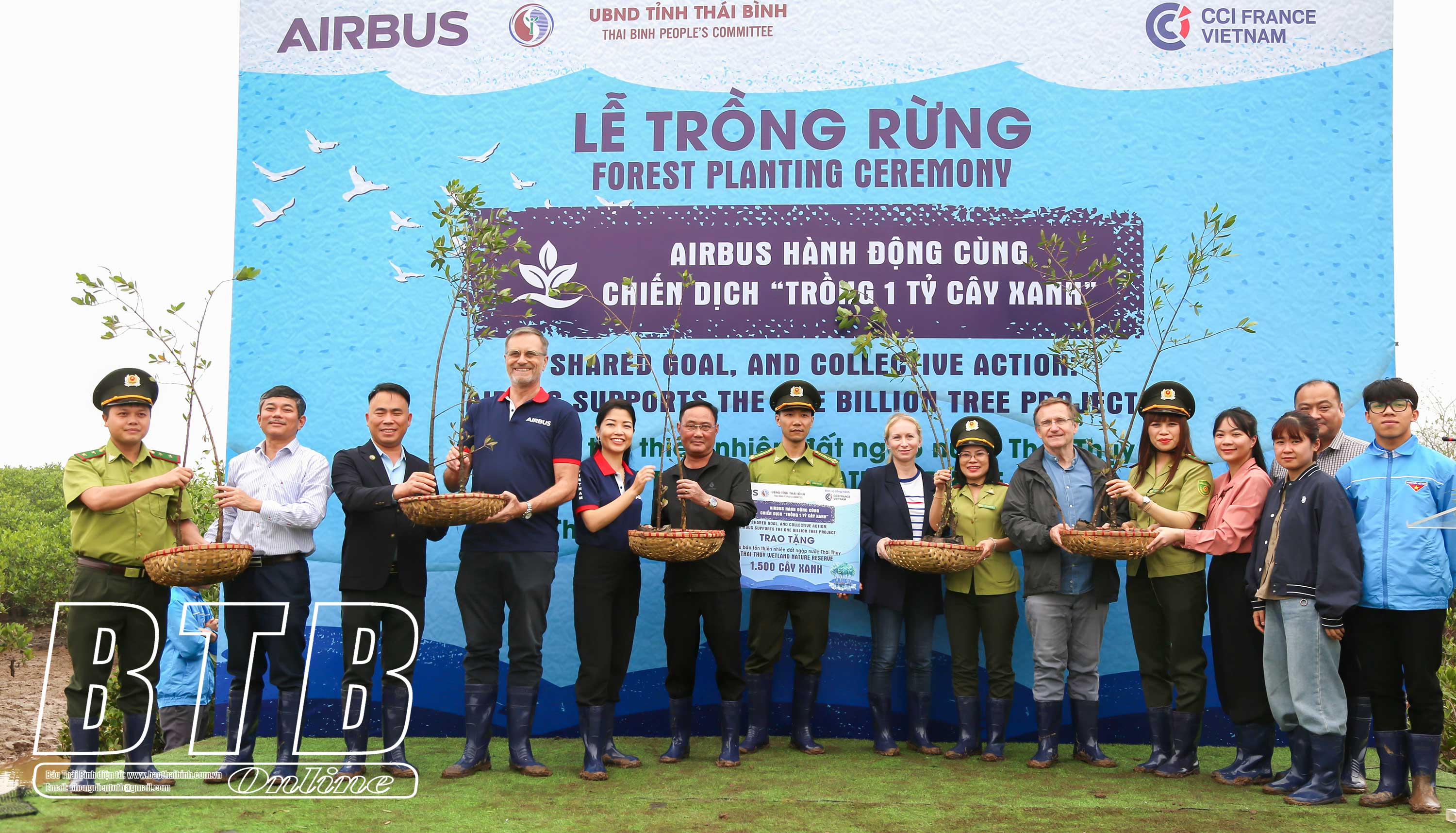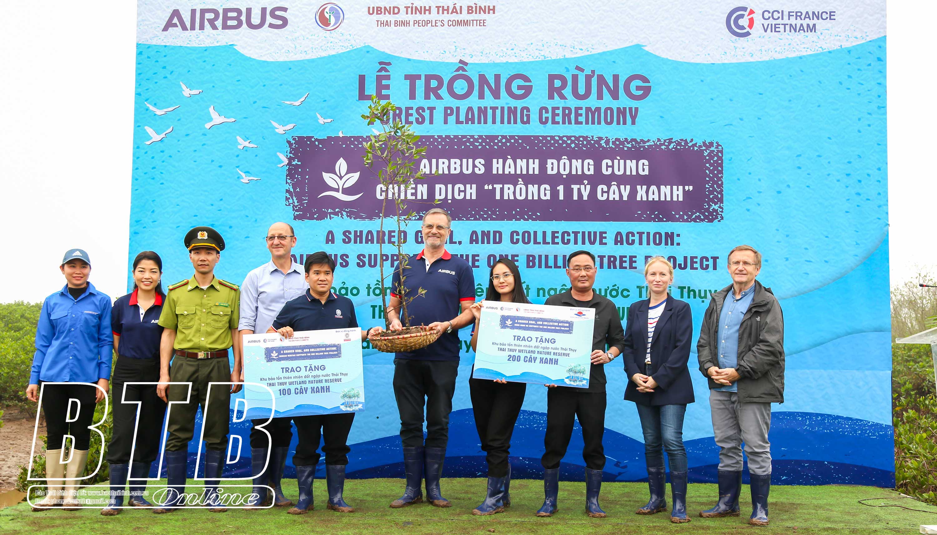 Với chủ đề “Airbus hành động cùng chiến dịch trồng 1 tỷ cây xanh”, các đại biểu tham gia trồng 1.500 cây tại khu bảo tồn. Hoạt động này không chỉ góp phần hiện thực hóa cam kết của Thủ tướng Chính phủ tại Hội nghị COP26 về ứng phó biến đổi khí hậu, mà còn mang lại ý nghĩa thiết thực cho cộng đồng địa phương trong công tác bảo vệ môi trường, trồng và giữ rừng, góp phần bảo tồn và phát huy giá trị sinh thái của hệ sinh thái đất ngập nước tại Thái Bình.