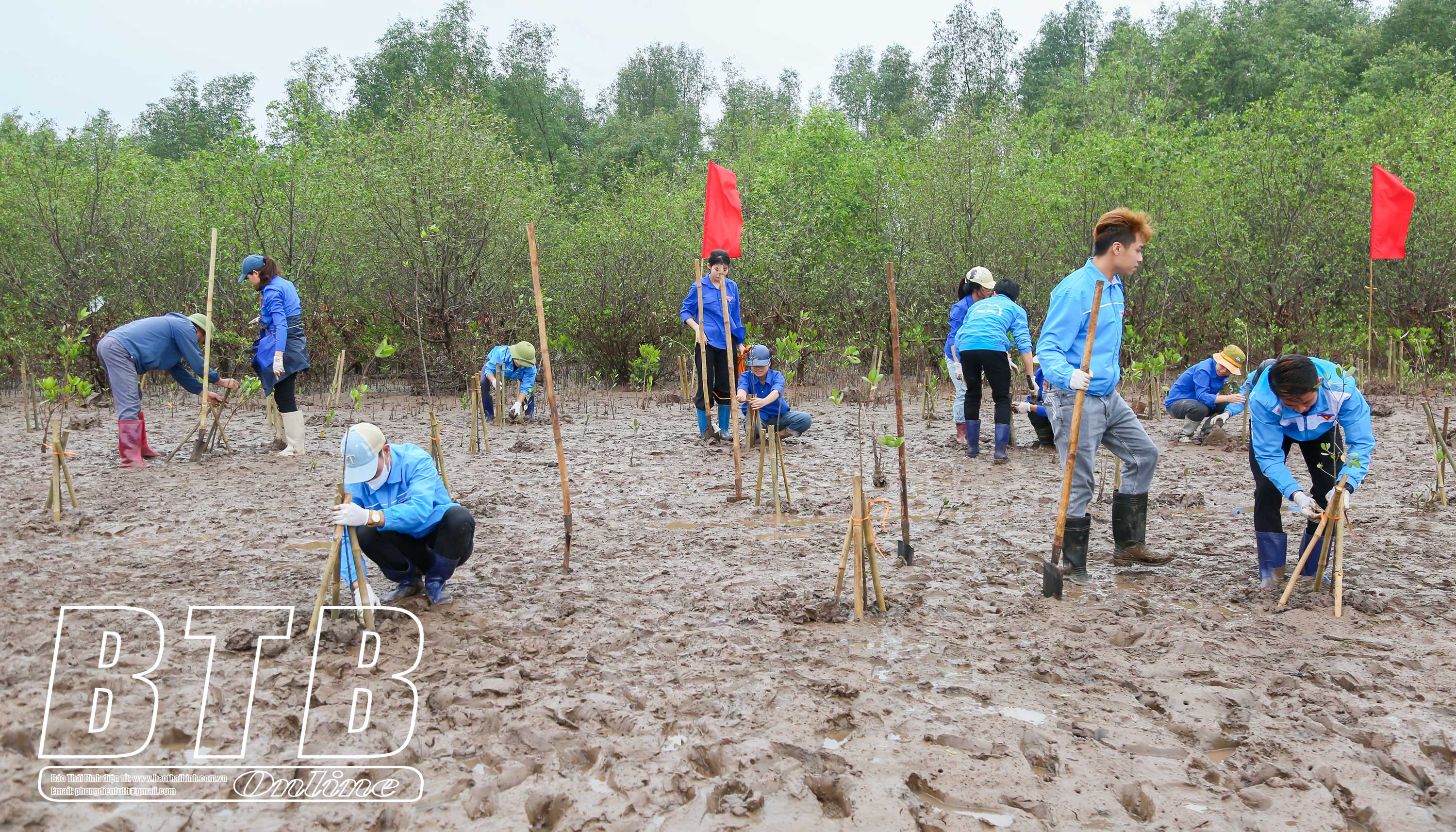 Đoàn viên, thanh niên xã Thụy Xuân trồng rừng ngập mặn.