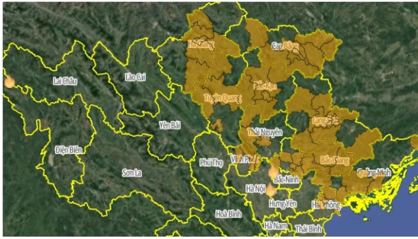 Một góc bản đồ cảnh báo cháy rừng và điểm cháy khu vực miền bắc sáng 17/4/2025. (Nguồn: Cục Lâm nghiệp và Kiểm lâm)