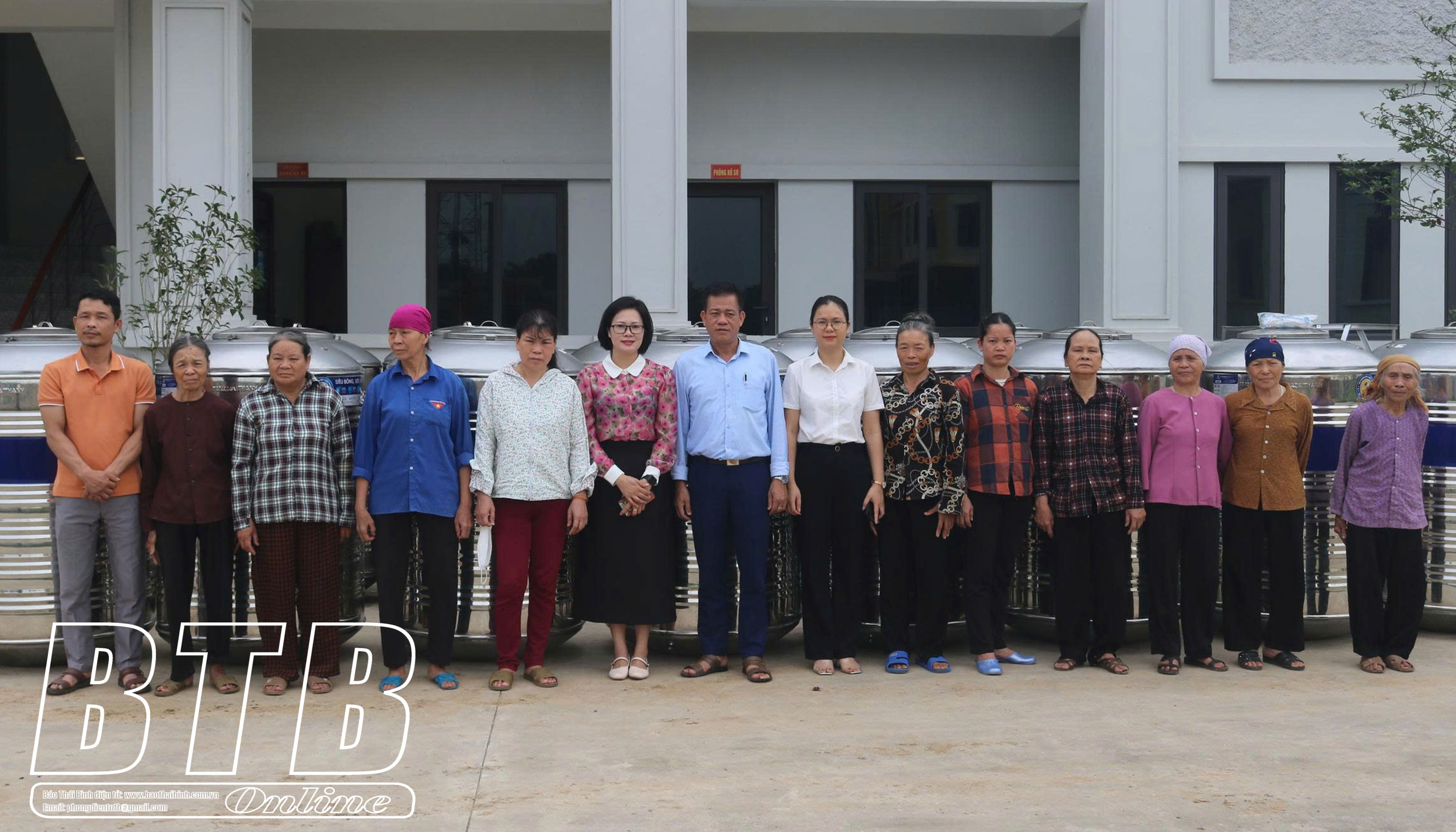 Trao tặng bồn chứa nước cho các hộ gia đình xã Đồng Tiến (Quỳnh Phụ).