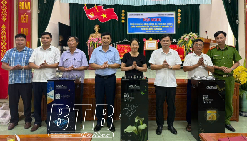 Làng trẻ em SOS Thái Bình trao tặng máy lọc nước cho xã Bình Định (Kiến Xương).