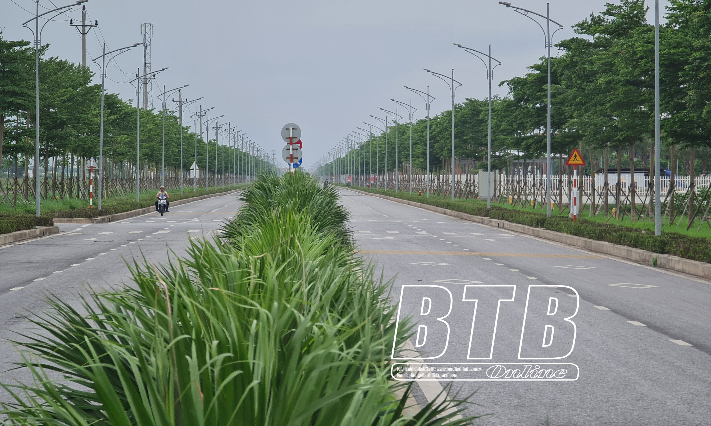 Không gian KCN Liên Hà Thái (Thái Thụy) được phủ bởi màu xanh của cây và thảm cỏ sinh thái tạo cảnh quan xanh - sạch - đẹp cho khu vực.