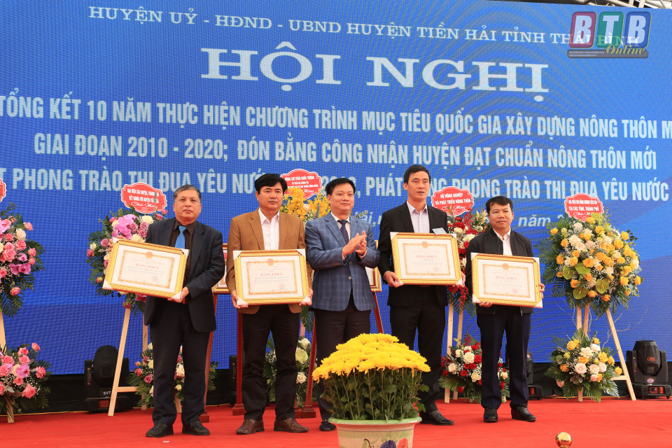 Với sự nỗ lực cố gắng của Đảng bộ, chính quyền và nhân dân huyện Tiền Hải đến đầu năm 2019 đã có 34/34 xã đạt chuẩn NTM; tháng 10/2019, Thủ tướng Chính phủ đã ký quyết định công nhận huyện Tiền Hải đạt chuẩn huyện NTM và vinh dự được Chủ tịch nước tặng thưởng phần thưởng cao quý Huân chương Lao động hạng Ba cho nhân dân và cán bộ huyện Tiền Hải vì có thành tích xuất sắc trong phong trào thi đua cả nước chung sức xây dựng NTM giai đoạn 2016-2020. Tổng nguồn vốn huyện Tiền Hải đã huy động xây dựng NTM đạt 2.249 tỷ đồng, trong đó ngân sách nhà nước là 1.400 tỷ đồng; huy động nhân dân đóng góp và con em xa quê ủng hộ đạt 849 tỷ đồng. Chương trình NTM luôn là nhiệm vụ trọng tâm, thường xuyên của cấp ủy, chính quyền và nhân dân, không có điểm dừng. Mục tiêu phấn đấu năm 2020 của huyện Tiền Hải có 8 xã đạt NTM nâng cao, trong đó có 4 xã đạt NTM kiểu mẫu.