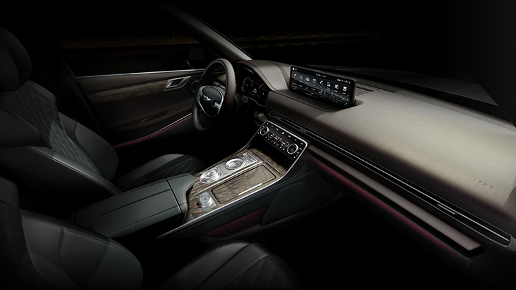 Nội thất thiết kế tập trung vào không gian mở, đặc trưng của thẩm mỹ kiến trúc Hàn Quốc. Hãng sử dụng nhiều vật liệu cao cấp từ gỗ cho đến da. Màn hình giải trí cỡ lớn đặt trên táp-lô, bảng điều khiển trung tâm với những núm xoay điều chỉnh từ điều hòa cho đến hộp số. Cửa gió điều hòa dạng mảnh.