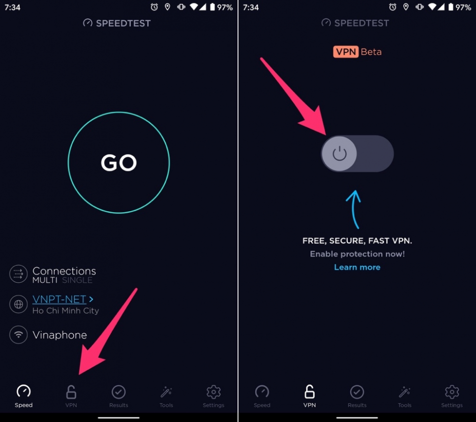 Để sử dụng tính năng VPN của Speedtest, bạn chỉ cần làm theo các bước hướng dẫn dưới đây: