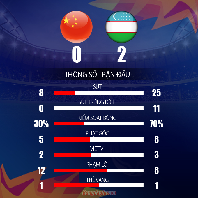 Còn với U23 Trung Quốc, sau thất bại thứ 2 liên tiếp ở bảng C, họ đã trở thành đội bóng đầu tiên bị loại khỏi VCK U23 châu Á 2020.