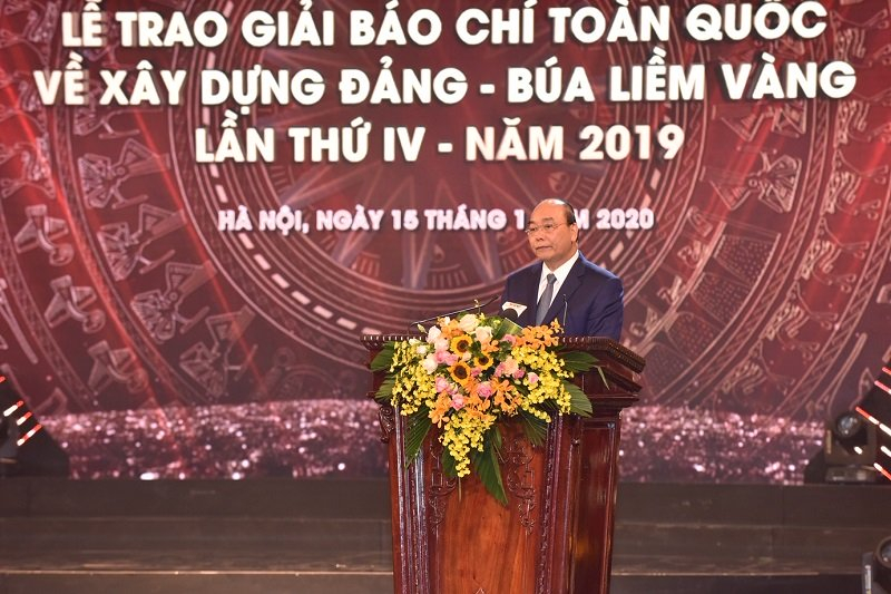 Thủ tướng Chính phủ Nguyễn Xuân Phúc phát biểu tại Lễ trao Giải báo chí toàn quốc về xây dựng Ðảng.