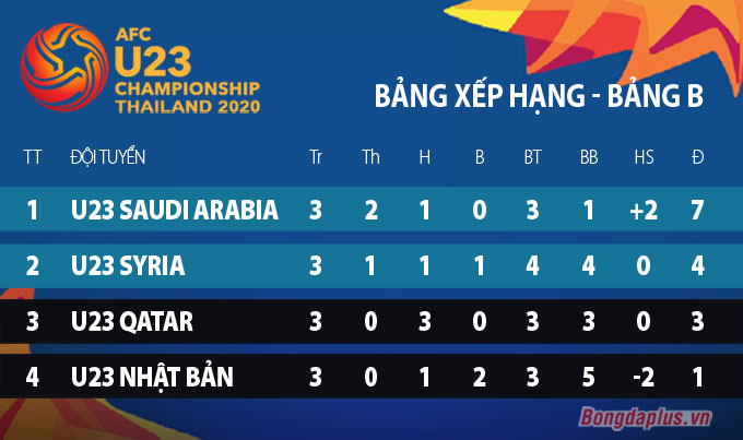 Trước khi lượt đấu cuối của VCK U23 châu Á 2020 diễn ra, U23 Nhật Bản đã chính thức bị loại sau 2 trận toàn thua. Trong khi đó, U23 Qatar cần phải giành trọn 3 điểm đồng thời mong đợi một kết quả có lợi ở trận đấu giữa U23 Saudi Arabia và U23 Syria.