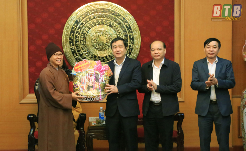 Ban Trị sự Giáo hội Phật giáo Việt Nam tỉnh Thái Bình chúc tết, tặng quà UBND tỉnh.