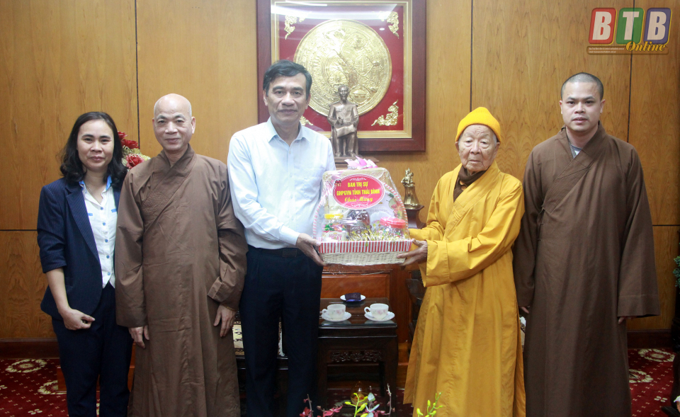 Ban Trị sự Giáo hội Phật giáo Việt Nam tỉnh Thái Bình chúc tết, tặng quà Tỉnh ủy.