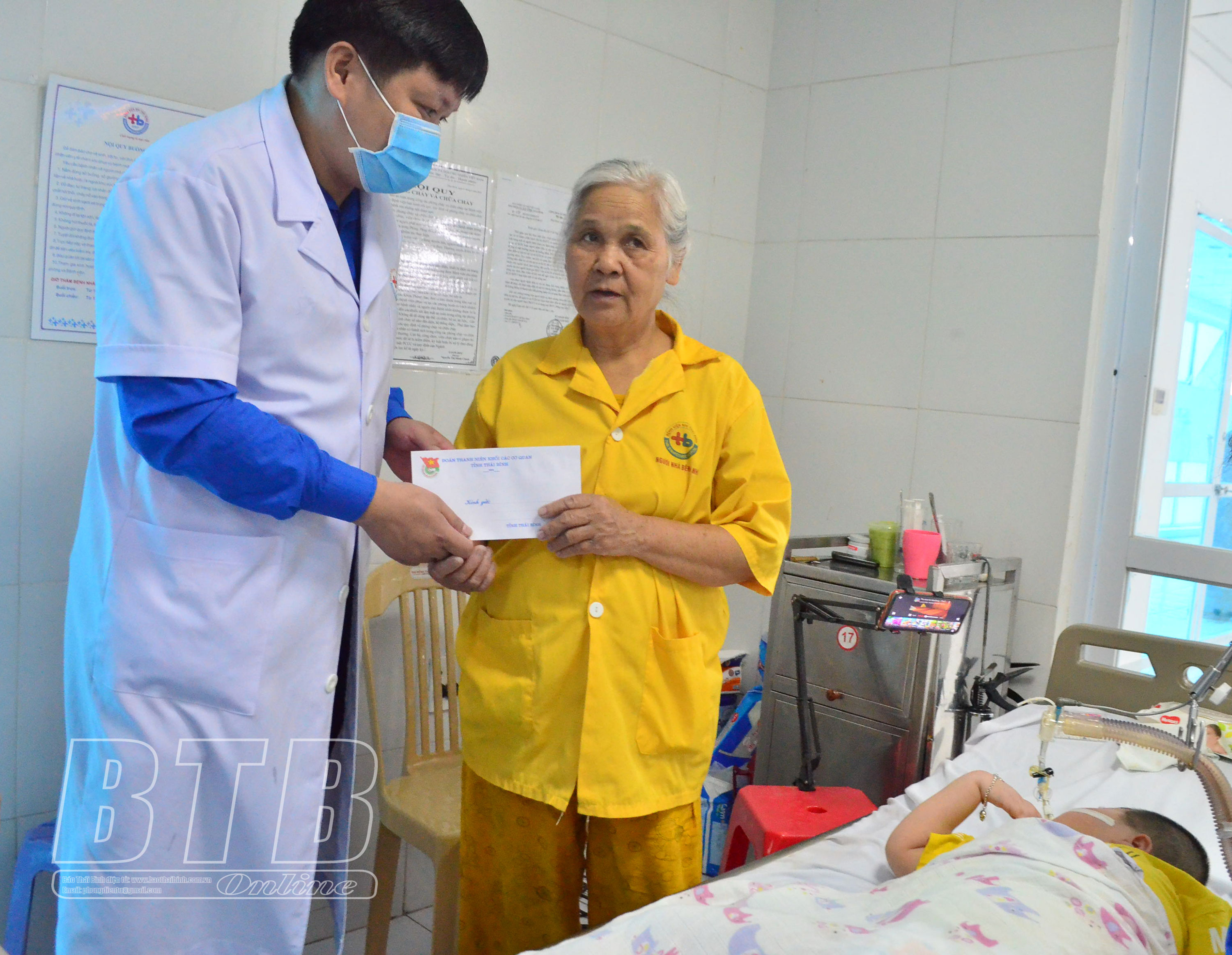 Đoàn Thanh niên Khối các cơ quan tỉnh trao quà cho người nhà của em nhỏ đang điều trị tại Bệnh viện Nhi Thái Bình.