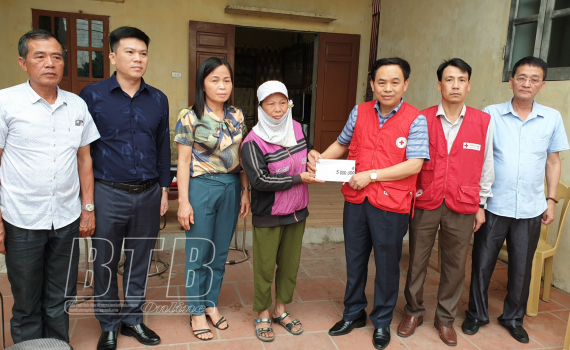Sáng ngày 7/4, Hội Chữ thập đỏ tỉnh đã đến thăm, hỗ trợ đột xuất cho gia đình bà Ngô Thị Xuân, xóm 9, tổ dân phố Bao Trình, thị trấn Diêm Điền (Thái Thụy).