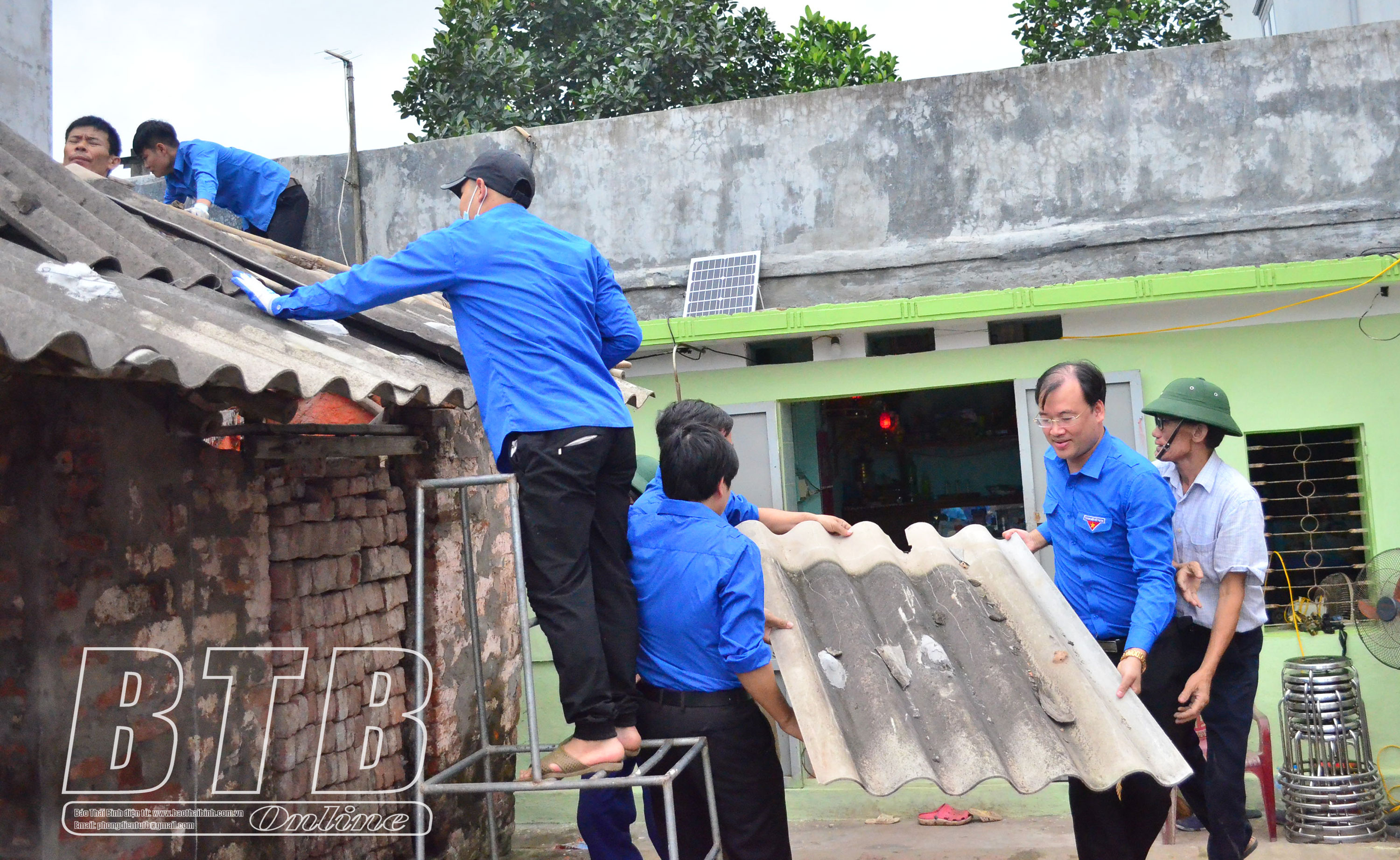 Cán bộ, đoàn viên, thanh niên hỗ trợ dỡ nhà cũ cho gia đình em Phạm Thị Thanh Thúy.