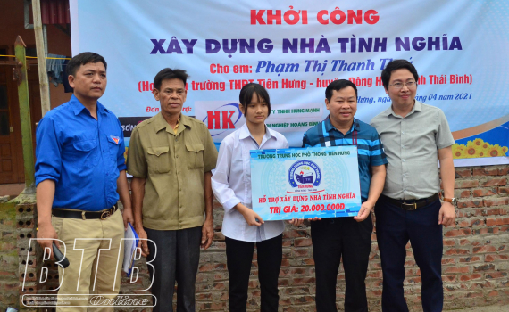Em Phạm Thị Thanh Thúy là học sinh giỏi lớp 10A4, Trường THPT Tiên Hưng. Gia đình em thuộc diện hộ cận nghèo, bố sức khỏe yếu, mẹ làm ruộng, em Thúy còn 2 em trai đang học lớp 8. Căn nhà của gia đình em chỉ là gạch xếp chồng lên nhau, không còn an toàn khi mùa mưa bão đến. Trước hoàn cảnh khó khăn của gia đình, Trường THPT Tiên Hưng đã hỗ trợ 20 triệu đồng; các cấp bộ đoàn đã vận động quyên góp từ một số doanh nghiệp hỗ trợ nguyên vật liệu để xây nhà tình nghĩa cho gia đình em Thúy với tổng giá trị hơn 100 triệu đồng. Đoàn viên thanh niên xã Minh Tân và Trường THPT Tiên Hưng hỗ trợ ngày công phá dỡ nhà cũ, xây nhà mới cho gia đình em Thúy.