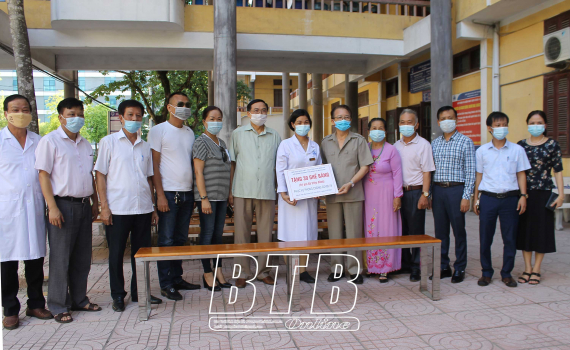 Lãnh đạo Hội Hữu nghị Việt - Nga tỉnh Thái Bình và đại diện Hội đồng hương Thái Bình tại Mát-xcơ-va (Liên bang Nga) trao quà tặng cho lãnh đạo Bệnh viện Đa khoa tỉnh