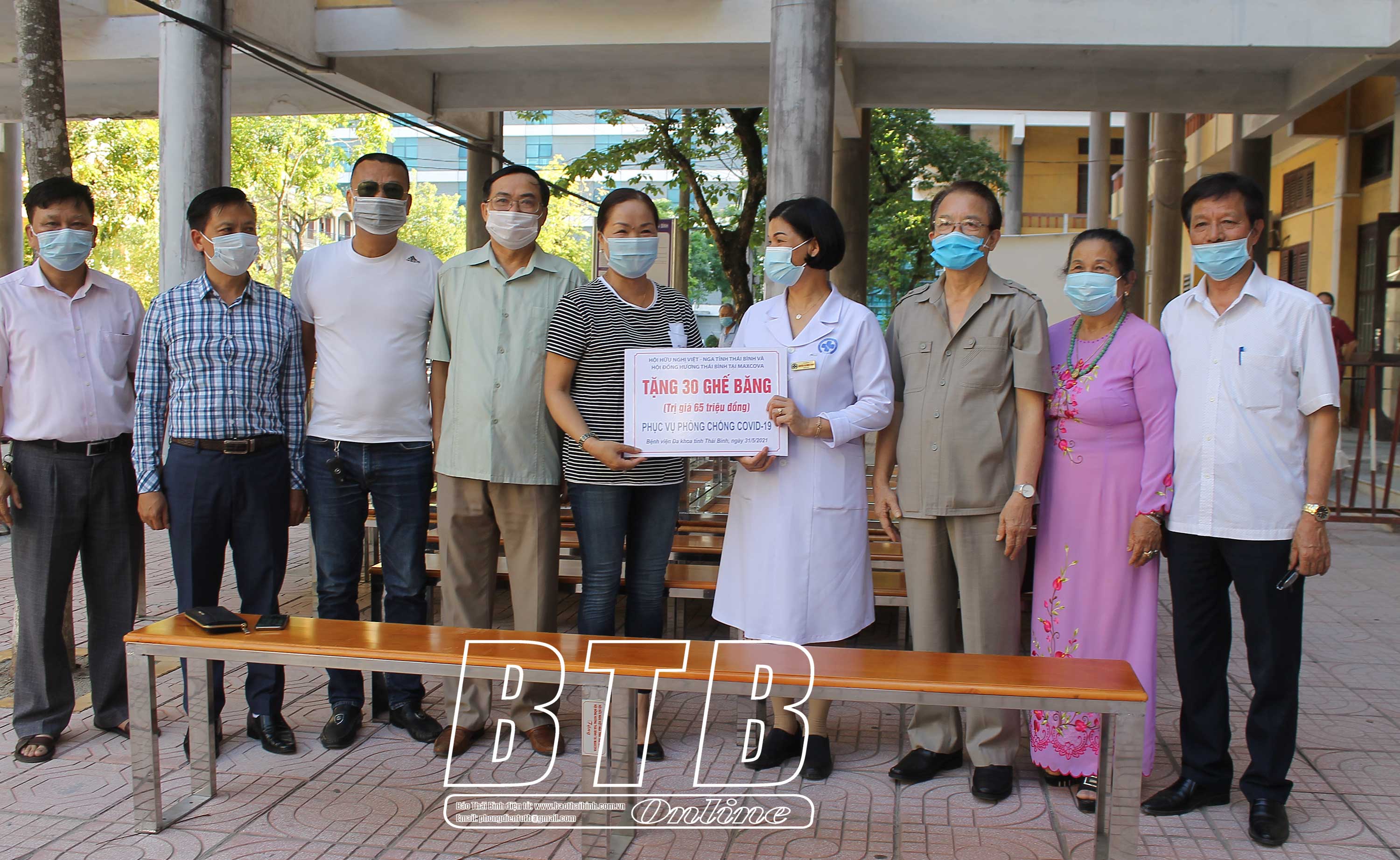 30 chiếc ghế băng, mỗi chiếc có chiều dài 2,4 mét, chiều rộng 30cm, được làm bằng vật liệu inox và gỗ thông ghép có chất lượng tốt được lãnh đạo Hội Đồng hương Thái Bình tại Mát-xcơ-va và Hội Hữu nghị Việt Nga tỉnh Thái Bình trao cho Bệnh viện Đa khoa tỉnh. Toàn bộ số ghế có tổng trị giá 65 triệu đồng; trong đó Hội Đồng hương Thái Bình tại Mát-xcơ-va ủng hộ 40 triệu, số kinh phí còn lại do cán bộ, hội viên Hội Hữu nghị Việt Nga tỉnh Thái Bình ủng hộ.