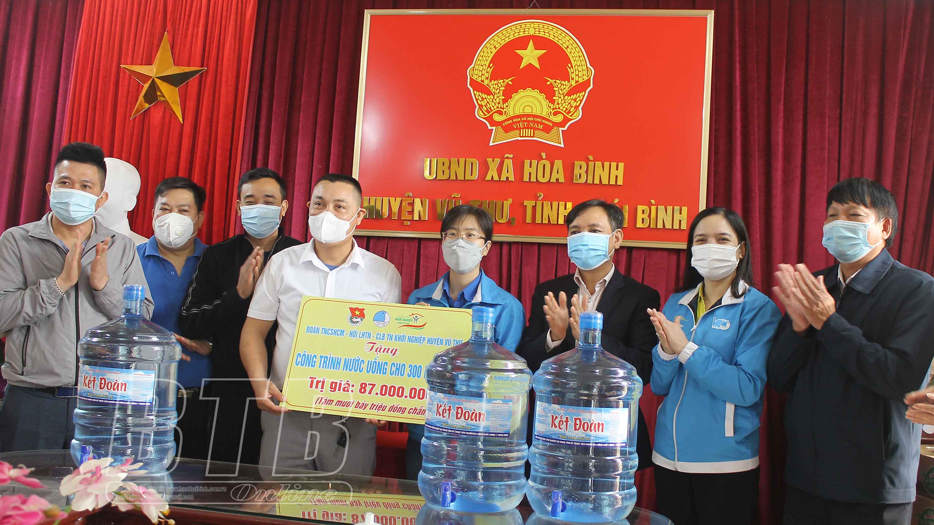 Theo đó, bắt đầu từ tháng 12/2021, định kỳ hàng tháng, Huyện đoàn Vũ Thư sẽ phối hợp với Câu lạc bộ Thanh niên khởi nghiệp huyện tổ chức vận chuyển, trao tặng 300 bình nước uống tinh khiết cho 300 hộ nghèo của 30 xã, thị trấn trên địa bàn. Thời gian trao tặng nước uống sẽ kéo dài trong 5 năm với tổng kinh phí 87 triệu đồng, do Câu lạc bộ Thanh niên khởi nghiệp huyện ủng hộ.