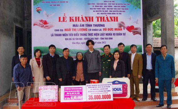 Ban CHQS huyện Thái Thụy và các đơn vị, nhà tài trợ khánh thành, bàn giao nhà mái ấm tình thương cho gia đình bà Ngô Thị Lượng.