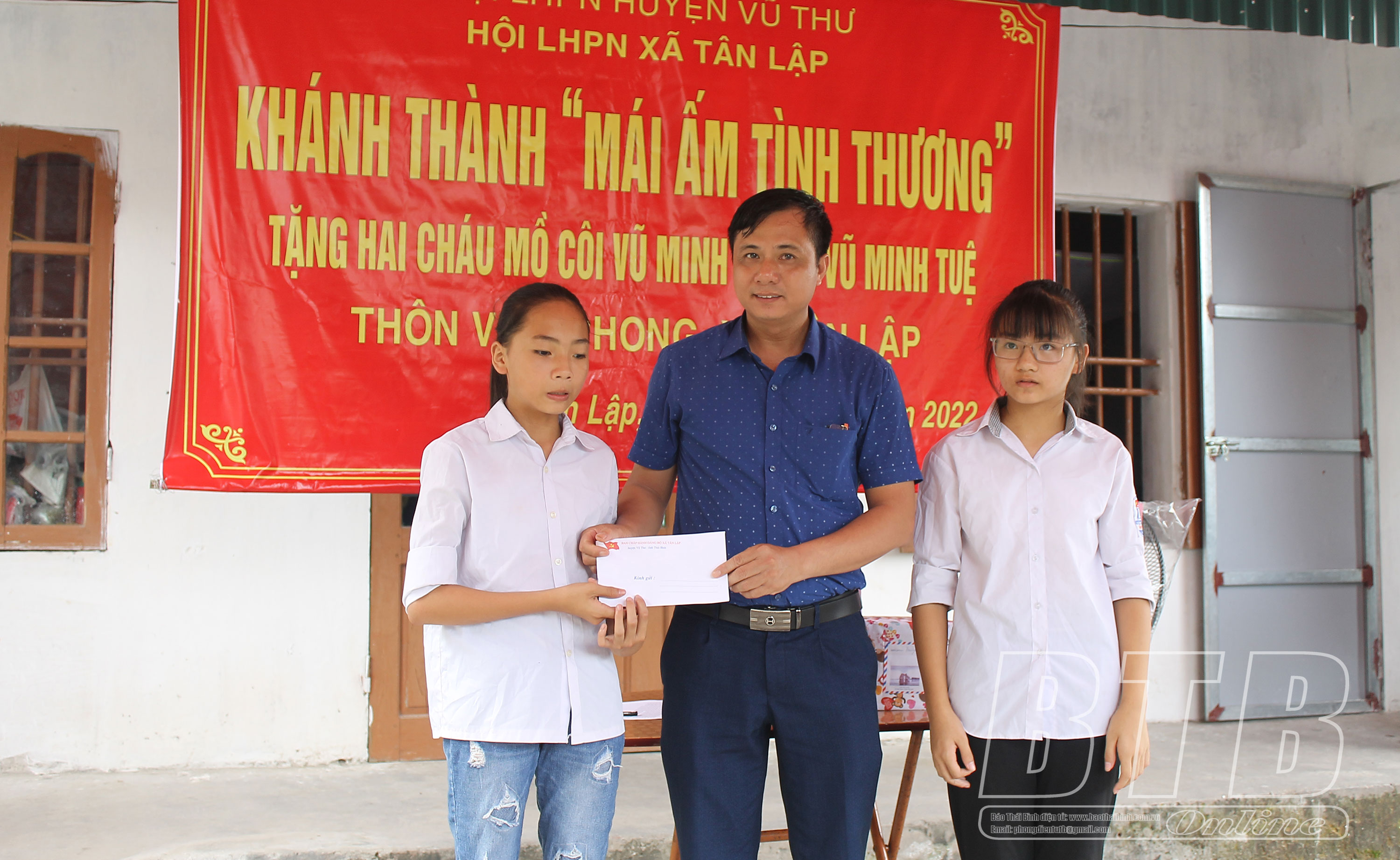 Lãnh đạo Hội LHPN huyện Vũ Thư tặng quà cho 2 em nhỏ mồ côi nhân dịp khánh thành mái ấm tình thương.