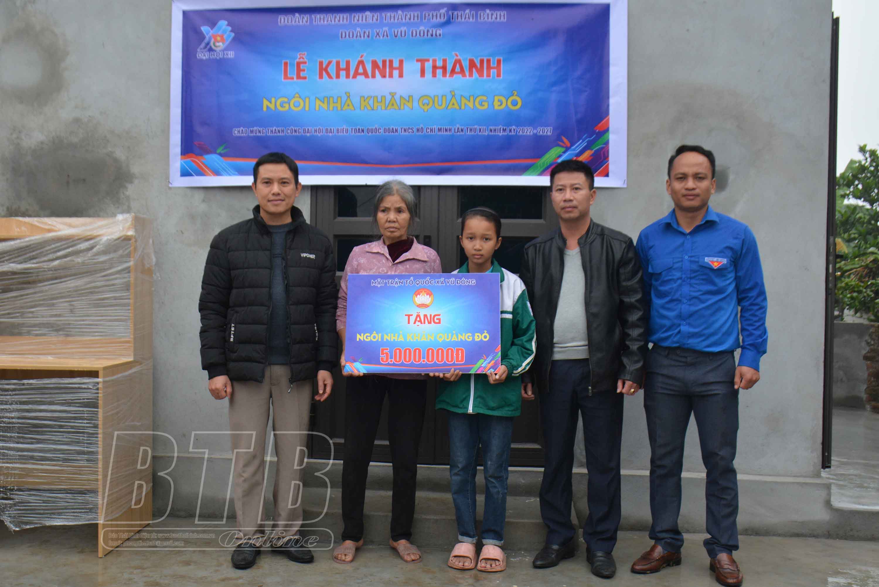 Đoàn Thanh niên thành phố Thái Bình, Đoàn Thanh niên xã Vũ Đông trao kinh phí hỗ trợ xây nhà cho mẹ con em Tâm.