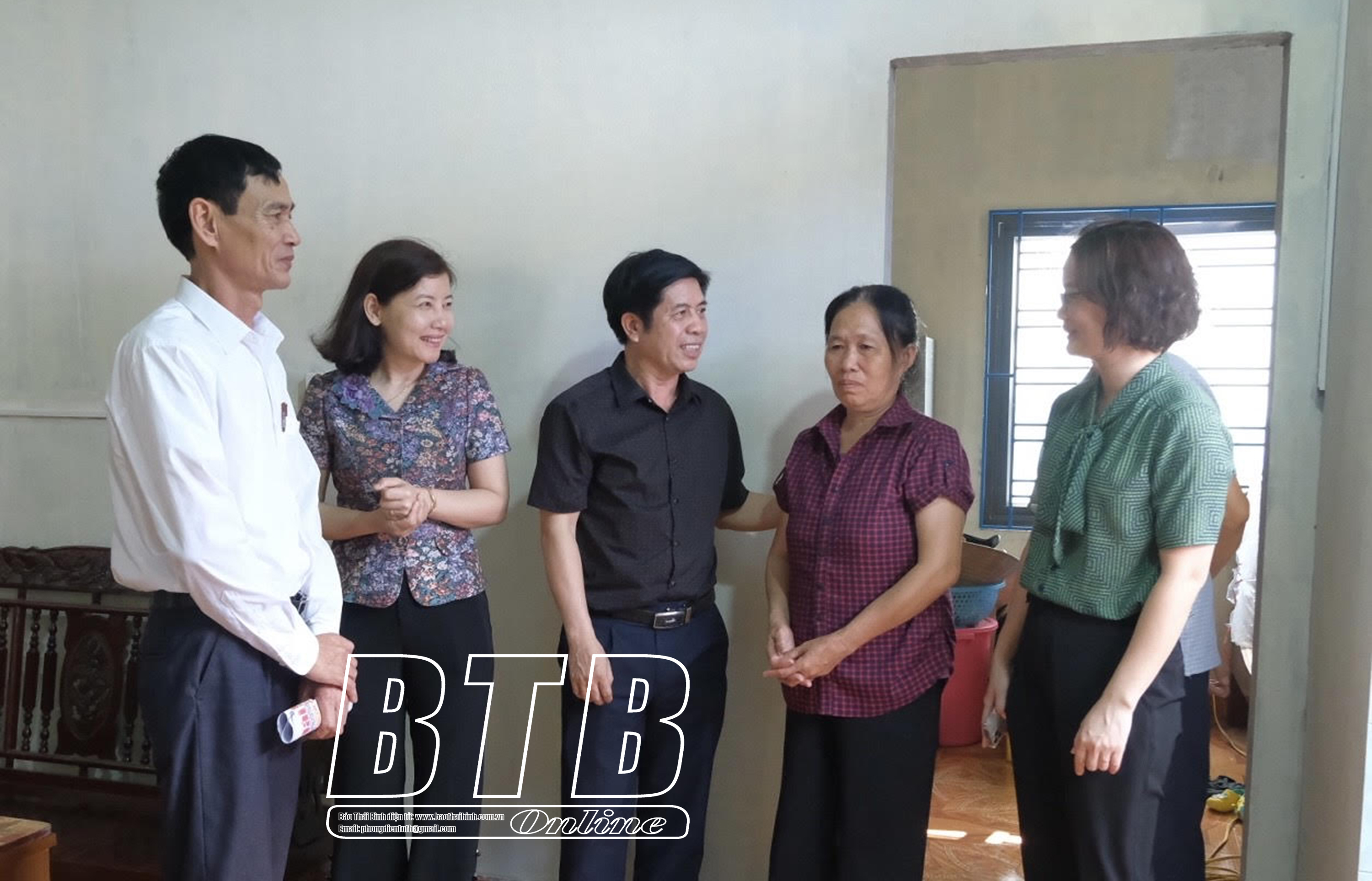Lãnh đạo Hội Nông dân tỉnh và các ban, ngành địa phương thăm hỏi, động viên bà Bùi Thị Khuôn.
