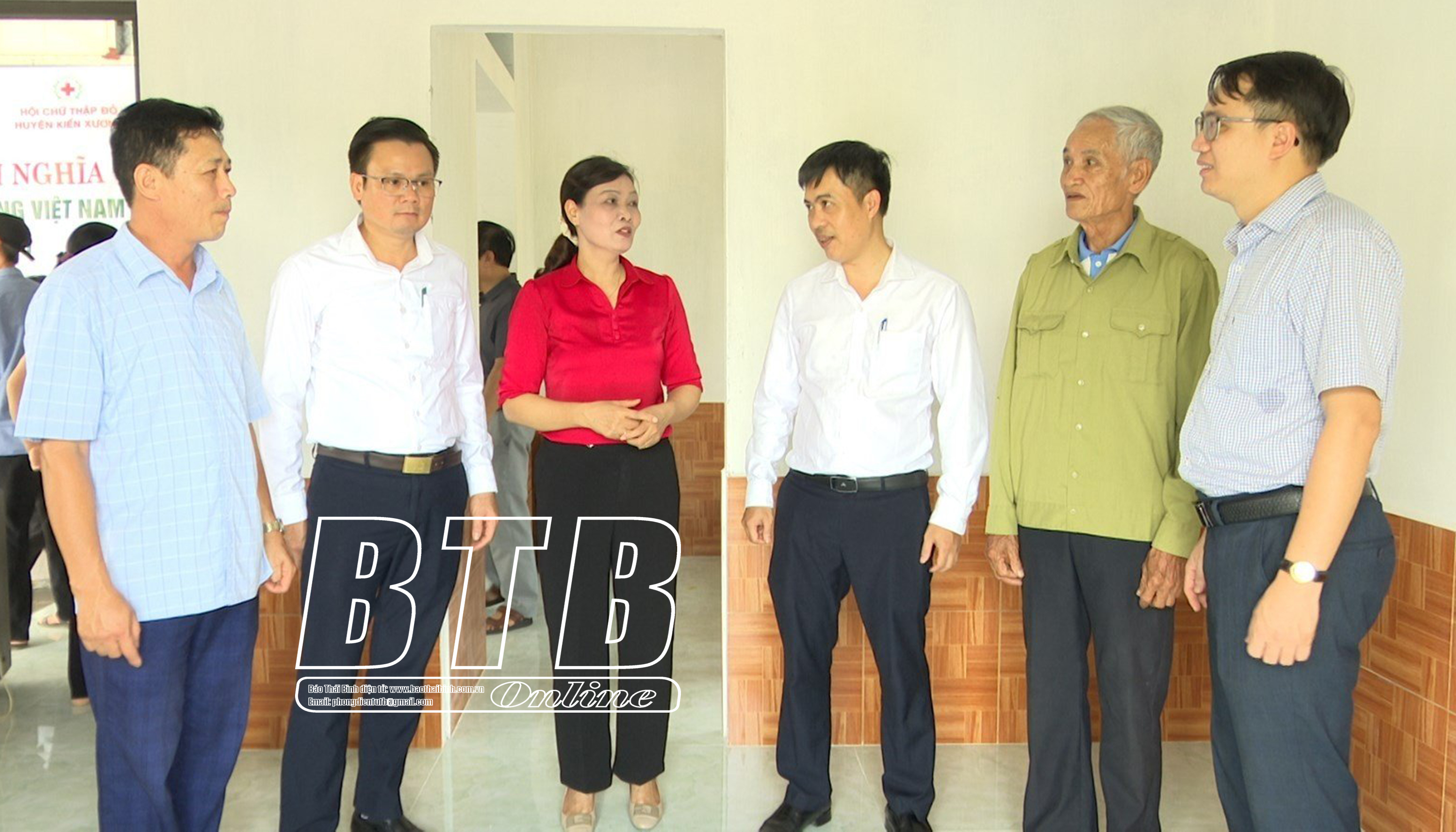 Lãnh đạo huyện Kiến Xương, đơn vị tài trợ, chính quyền địa phương tham quan công trình.