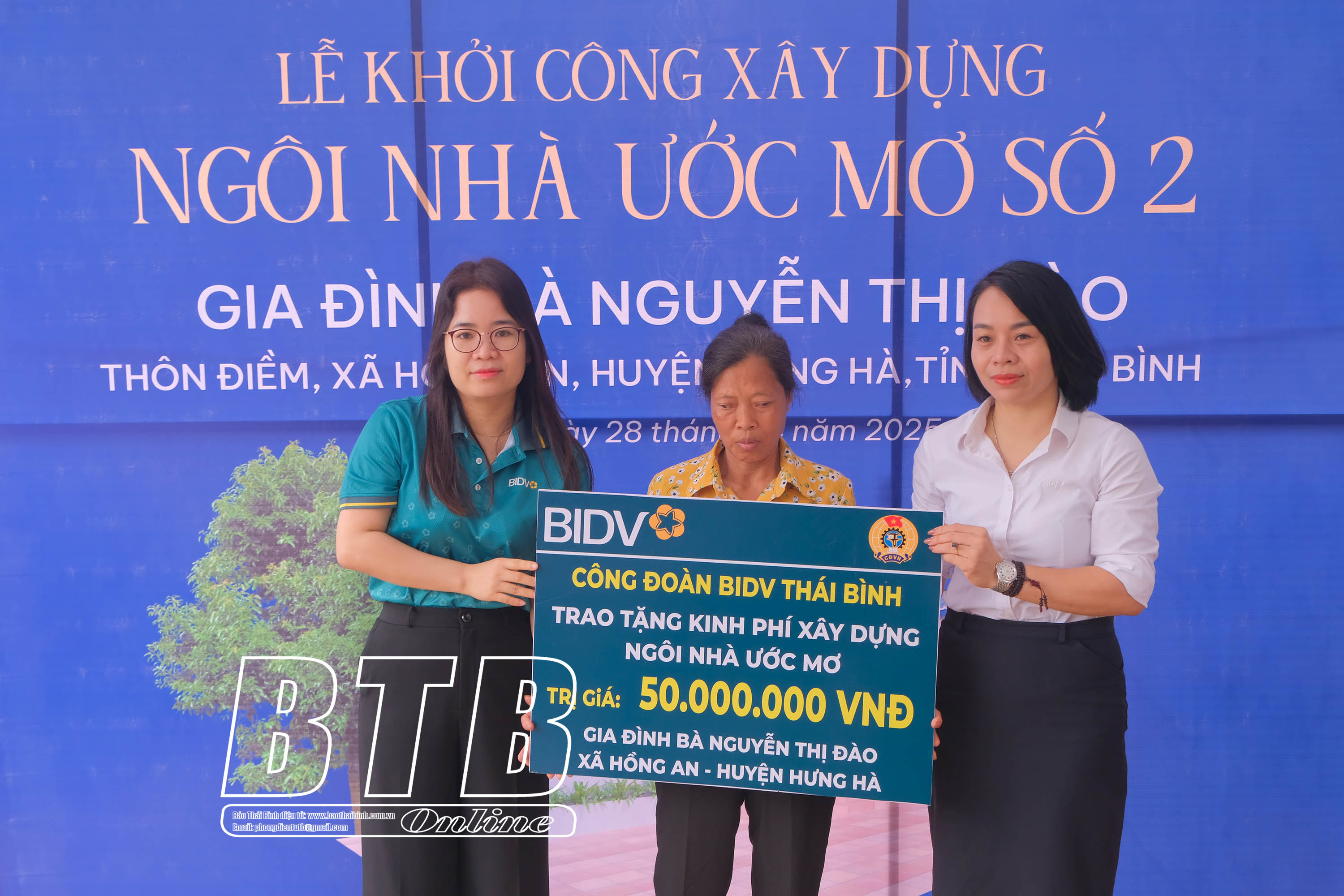 Ngân hàng Thương mại cổ phần Đầu tư và Phát triển Việt Nam Chi nhánh Thái Bình (BIDV Thái Bình) trao kinh phí hỗ trợ xây dựng nhà cho bà Nguyễn Thị Đào.