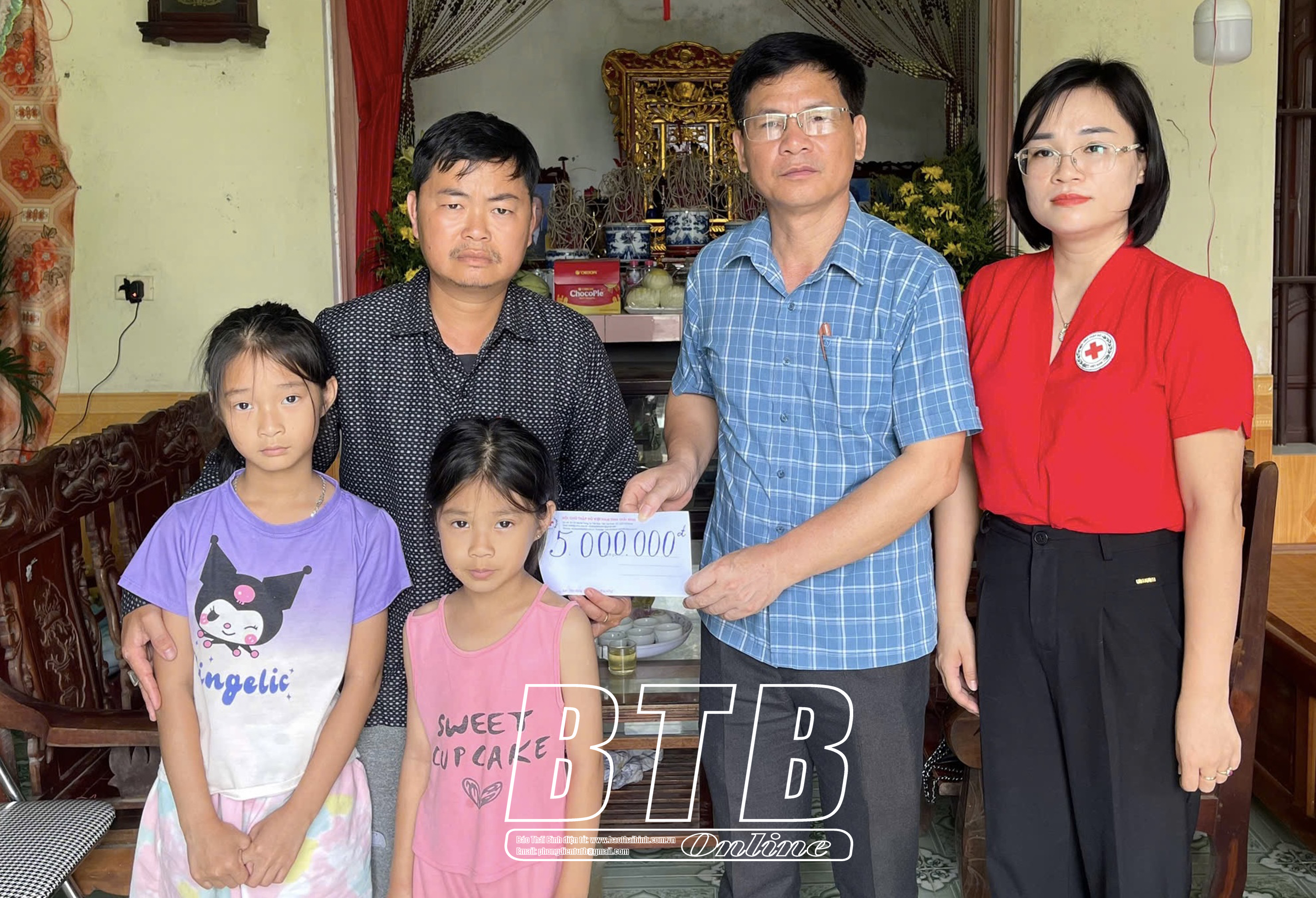 Cũng trong sáng ngày 22/5, Hội Chữ thập đỏ tỉnh đến thăm hỏi, động viên, trao 5 triệu đồng hỗ trợ gia đình có 2 mẹ con tử vong do đuối nước ở xã Minh Tân (Kiến Xương).