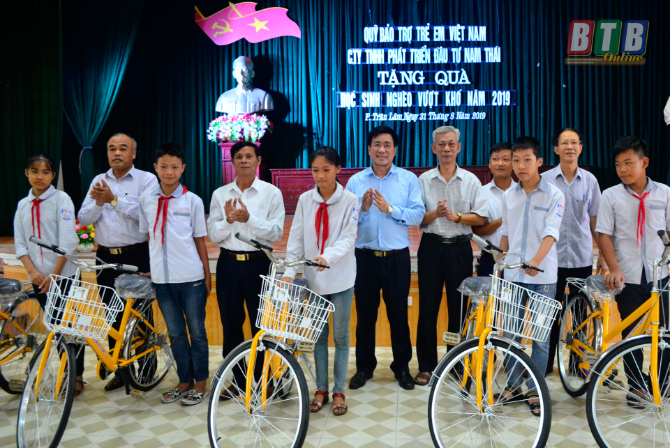 Quỹ Bảo trợ trẻ em Việt Nam đã dành tặng 70 suất quà, trị giá 500.000 đồng/suất và 10 chiếc xe đạp cho các em học sinh có hoàn cảnh khó khăn trên địa bàn phường Trần Lãm. Các em là những học sinh có hoàn cảnh khó khăn, có thành tích xuất sắc trong năm học 2018 - 2019.
